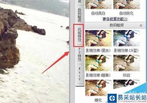 5、在這個界面的右側找到風格特效選項,如圖所示:
