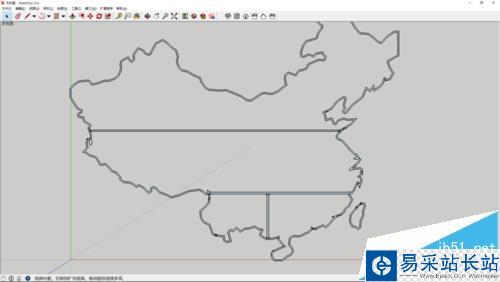 2、然后使用手繪線根據輪廓繪制出中國地圖輪廓。