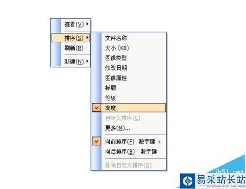 7、然后我們再右鍵就可以看見排序為高度,簡單吧
