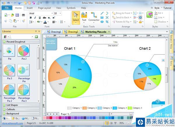 3)豐富的預定義模板庫讓您繪制圖形無需從頭開始,只要輕輕的拖曳即可做出漂亮的圖形。系統提供的實例模板庫,讓您思路開闊,在繪圖時不斷學習進步。