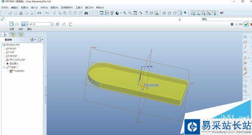1、首先打開我們的proe軟件,Ctrl+N新建一個文件,子類型為實體;然后使用拉伸的命令拉伸一個長方體,在TOP面繪制下圖所示的輪廓線條;拉伸的高度為40。