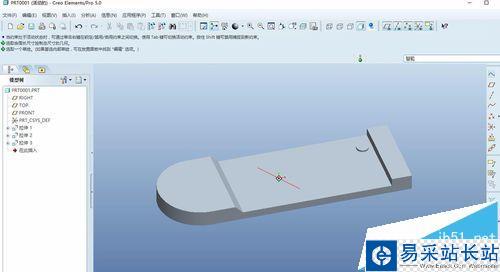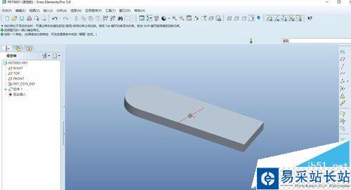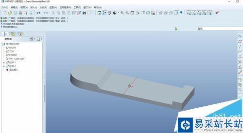 5、繼續(xù)使用拉伸,在切除的拉伸面上草繪平面,拉伸的高度為5,這是創(chuàng)建一個矩形的按鈕。和第三步一樣的方法。