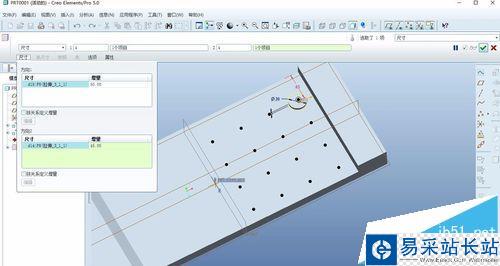 4、拾取上一步所創(chuàng)建的圓形按鈕,然后點擊陣列工具,點擊尺寸,修改增量,在另外的一個方向也是使用同樣的方法,增列都是為4,如下圖所示。