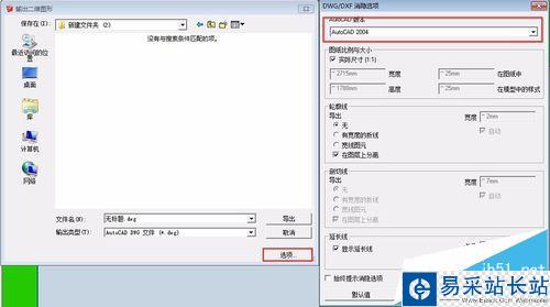 5、“文件”—“導(dǎo)出”,確定格式后綴為dwg(在右下角有個(gè)選項(xiàng),可選擇CAD的版本)