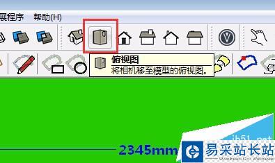 1、如圖,用草圖大師sketchup打開你的圖形,這里以2345mmx1234mm的矩形為例。