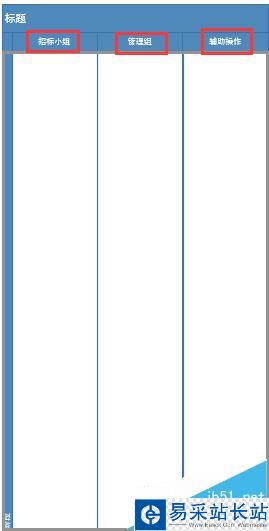 2、創(chuàng)建出來后,看到有兩列的內(nèi)容,它們也有自己的名字——泳道。我們可以再為它加一個(gè),拖動(dòng)到左側(cè)的垂直泳道到繪圖頁中。現(xiàn)在把三列的標(biāo)題改一下,分別改成“招標(biāo)小組”、“管理組”和“輔助操作”。