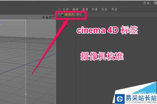 2、右鍵攝像機,依次選擇“cinema 4d 標簽”“攝像機校準”并選中校準標簽