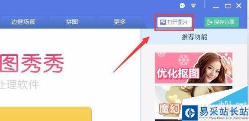 2、在這個界面的上面找到打開圖片選項,如圖所示: