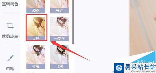 6、點擊藝術選項,在藝術操作界面內找到日光選項,如圖所示: