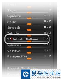 6、最后,返回到Deformation子菜單,在Inflate Balloon滑動條里輸入12(點開X、Y和Z軸)。