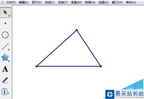 1、打開幾何畫板,先用線段工具任意畫一個三角形。