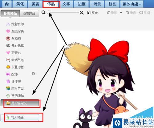 6、在“飾品”欄找到“導入飾品”,選擇“用戶自定義飾品”,從而導入飾品。