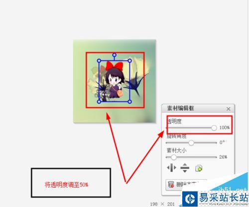 7、選擇先前保存的前景圖片,同時將其透明度改為50%即可。