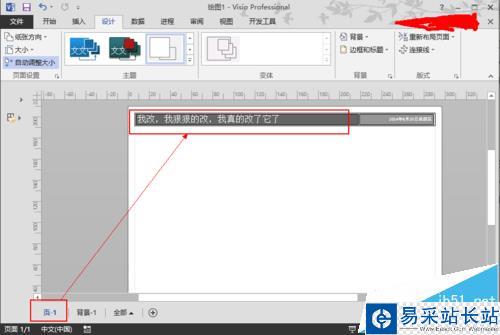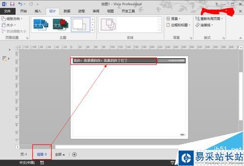 2、標題添加成功,你不是把鼠標一直點標題處,發現沒反應,無法修改?原來標題是額外的一個頁面,是一個背景頁面在你流程圖的最底層,添加完標題,觀察底部發現多一個【背景】頁面,這個背景頁面就是標題啦!