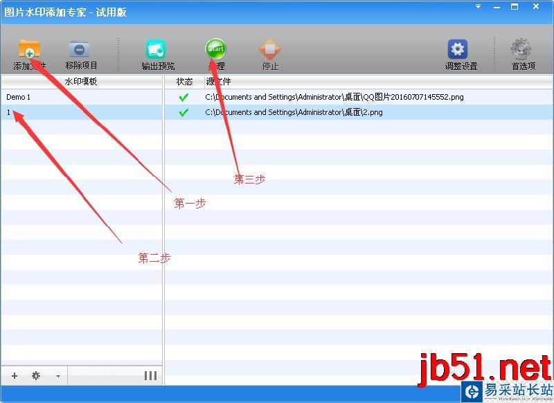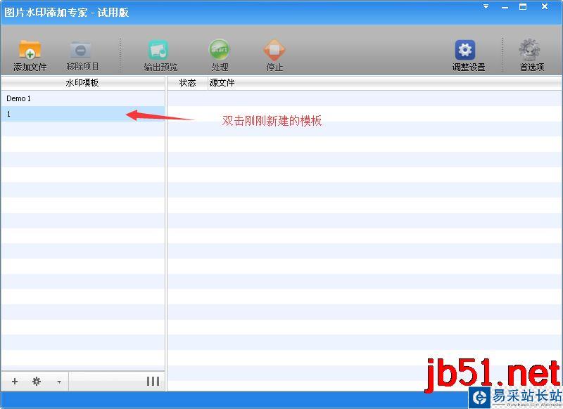 5、編輯好水印模版之后直接點擊X關閉,返回軟件的主界面進行添加圖片文件,選擇自己編輯好的模版,點擊處理即可。