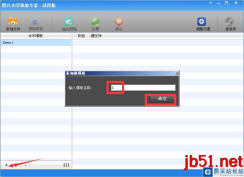 2、打開軟件之后點擊左下角的+號,新建一個水印模版;