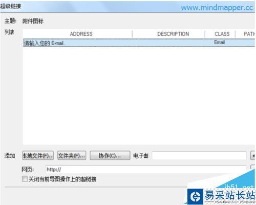 在MindMapper超鏈接中,有一項電子郵件,這個不是鏈接一封電子郵件,而是形成一個郵箱地址鏈接,便于發(fā)送郵件。