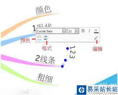 4、點擊編輯對話框可以對關聯線上的文字內容進行修改,還可以設置加粗、傾斜、字體顏色等。