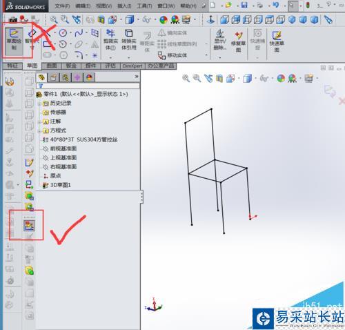 3、選擇3d草圖,選擇直線繪制所需要框架的模型線條。