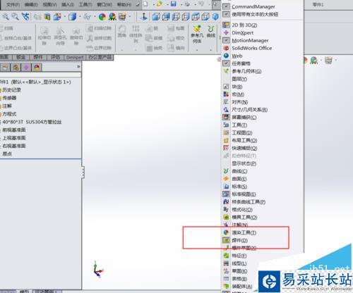 2、有的工具欄沒有焊件功能,右擊工具欄選擇焊件功能。