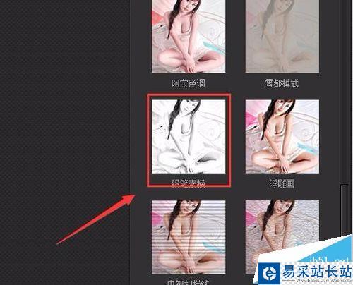 6、點擊數碼暗房,在數碼暗房的選擇區里找到鉛筆素描選項,如圖所示: