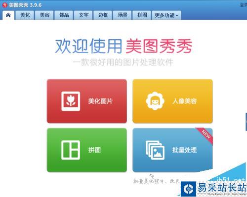 1、打開美圖秀秀這款軟件,進入美圖秀秀的操作界面,如圖所示: