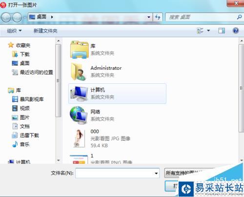 3、點擊打開后,彈出打開一張圖片對話框,如圖所示: