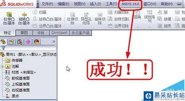 5workbench設(shè)置已經(jīng)完成,下面查看與solidworks插件是否連接上?打開solidworks插件,如下圖,“Ansys 14.0”插件已經(jīng)出現(xiàn),勾選此插件。