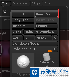 2、Tool>save as保存的.ZTL文件,是一個工具(Tool)。如果想制作三維模型,就要保存這個文件,下次再使用時可以用Tool>load命令調入,原來的細分級別等信息仍然會保留。