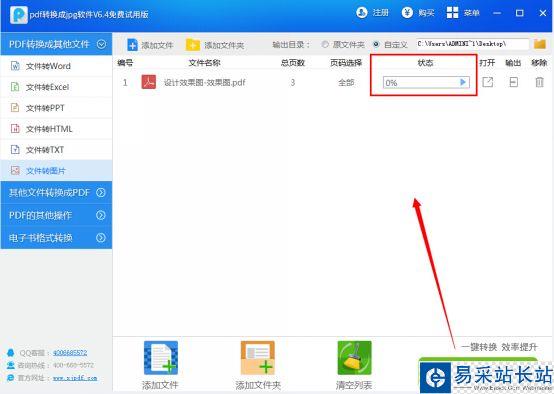 步驟5:轉(zhuǎn)換設置。在添加文件后用戶就能夠看見文件的總頁數(shù)和名稱等信息啦,在頁碼選擇下方點擊可以設置PDF轉(zhuǎn)換成JPG圖片的轉(zhuǎn)換頁碼范圍,如1~5頁。軟件上方有一個數(shù)輸出目錄,這里可以設置PDF轉(zhuǎn)換成JGP圖片格式后的存放位置。