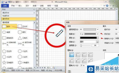 3、然后,單擊鼠標(biāo)右鍵,選擇“格式”-“線條”選項(xiàng),將圓形設(shè)置為純紅色,稍微較粗一點(diǎn),如圖所示。