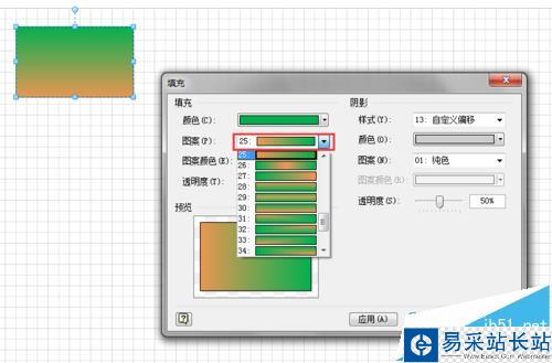 8、點擊填充設置界面中的圖案下拉欄可設置多種填充色的顯示方式