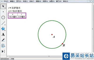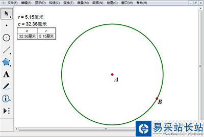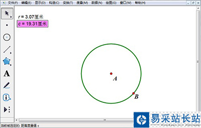 以圓的半徑與周長(zhǎng)為例,步驟如下:1.繪制圓并度量其半徑。在繪圖區(qū)域繪制一個(gè)圓,圓心為A。只選定點(diǎn)A和點(diǎn)B,選擇“度量”——“距離”,右鍵度量值,選擇“屬性”——“標(biāo)簽”,修改為“r”。