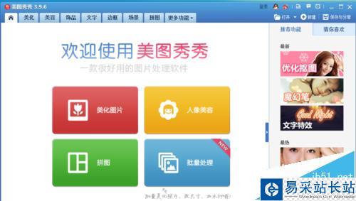 1、打開美圖秀秀這款操作軟件,進入美圖秀秀的操作界面,如圖所示: