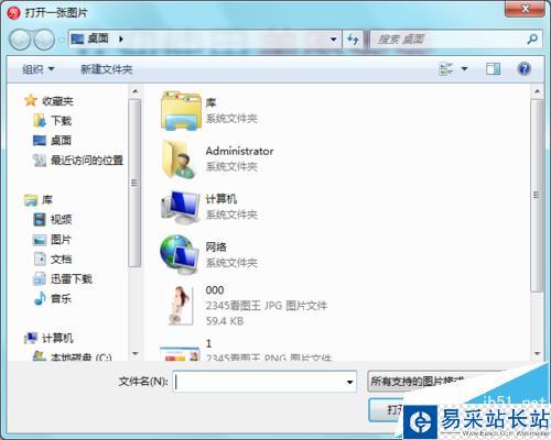 3、點擊打開選項,彈出打開一張圖片對話框,如圖所示: