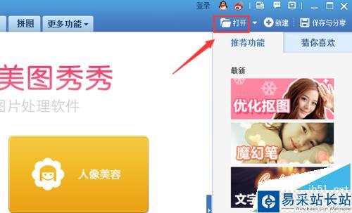 4、在電腦里找到我們需要的照片,點擊下面的打開,進入圖片編輯操作界面,如圖所示: