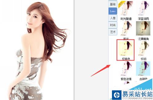 6、點擊LOMO選項,進入LOMO的選擇區域,在LOMO里找到反轉色選項,如圖所示: