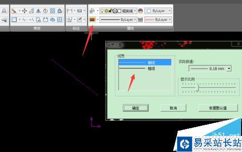 7、同樣繪制一條線就能看到線不是細(xì)的而是粗的;