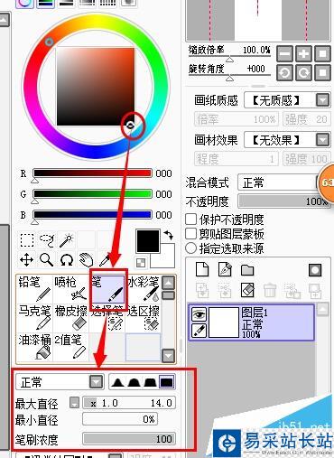 2、選擇筆,顏色黑,筆刷設置如下,其他隨意,其中筆刷濃度100%