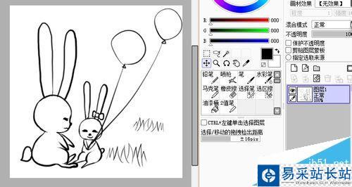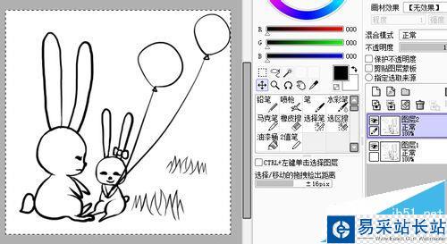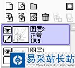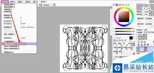 7、同樣的,參照步驟4到6,再ctrl+A全選,ctrl+C復制,ctrl+V粘帖,復制出一個新的圖層了。SAI上面有個頂端工具欄,點“圖層”,往下選擇“垂直翻轉圖層”,就會得到一個水平翻轉的畫面。 再次快捷鍵ctrl+E,把兩個新圖層合并,變成一個新新的圖層。