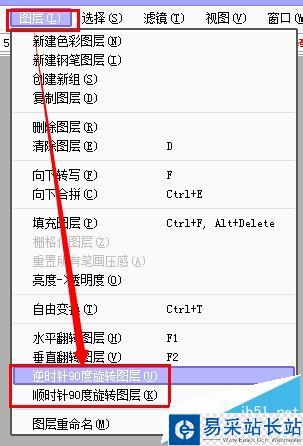 8、這里和上面的步驟一樣,只是在第5步驟的時候,選擇垂直旋轉90°,在“圖層”→“逆時針90度旋轉圖層”或者“順時針90度旋轉圖層”,即可得到如圖所示。