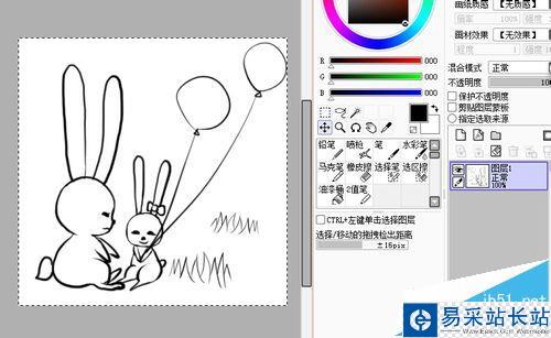 5、SAI上面有個頂端工具欄,點“圖層”,往下選擇“水平翻轉圖層”,就會得到一個水平翻轉的畫面。