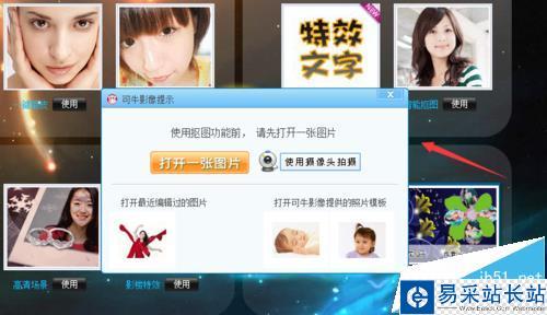 4、在這個提示對話框內點擊打開一張圖片選項,彈出打開圖片對話框,在我們的電腦里找到我們需要的圖片,點擊打開,進入摳圖操作界面,如圖所示: