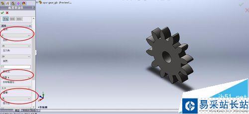 4、在上面點擊右鍵“生成零件”,在左邊自動彈出配置齒輪設置的屬性欄對話框,給出了系統默認的參數,我們可以根據自己的需要來更改。