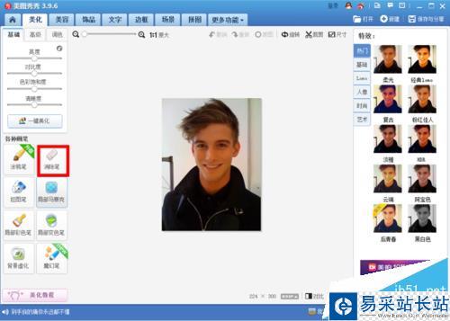 2、點擊消除筆,給人物臉的部分進行涂抹。
