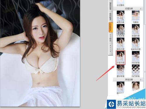 6、點(diǎn)擊風(fēng)格特效選項(xiàng),在風(fēng)格特效選項(xiàng)里找到磨砂玻璃選項(xiàng),如圖所示:
