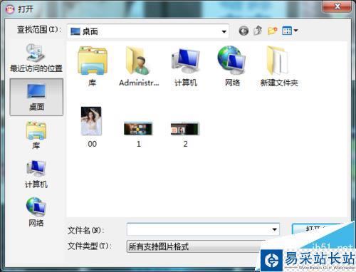 3、點(diǎn)擊打開(kāi)選項(xiàng)后,彈出打開(kāi)圖片對(duì)話框,如圖所示:
