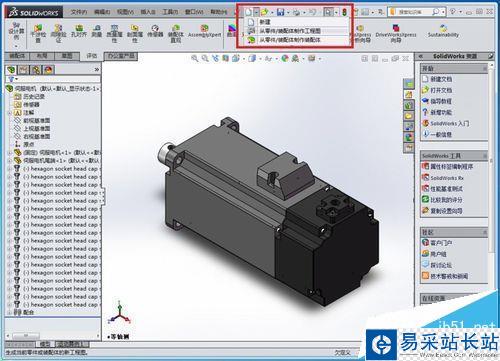 2、點擊標題欄“新建”圖標,選擇“從零件/裝配體制作工程圖”