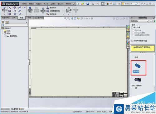 4、進入“工程圖”界面,選擇右側(cè)的“等軸測”,再選擇左側(cè)確認。