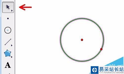 選中圓,然后點擊鼠標右鍵,選擇半徑,這時,左上角自動計算出圓的半徑并顯示,而且圓心用A表示,圓周上一點用B表示。如果我們此時不需要顯示圓的半徑是多少。可以選中左上角的標識,然后按下Delete鍵刪除就可以啦。